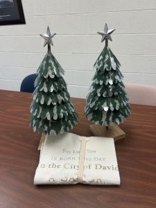 Two metal trees and table runner