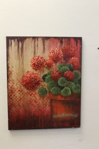 16x20 hand painted canvas (red flowers)